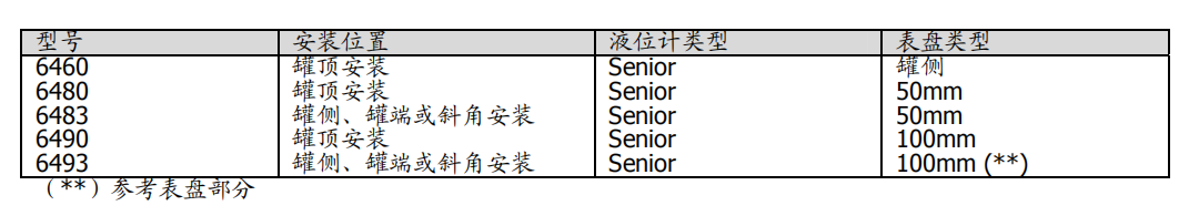 油化学的产品。6400 系列液位计适用于直径小于 2000mm,压
